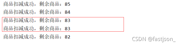 System.out.println("商品扣减成功,剩余商品:" + realStock);