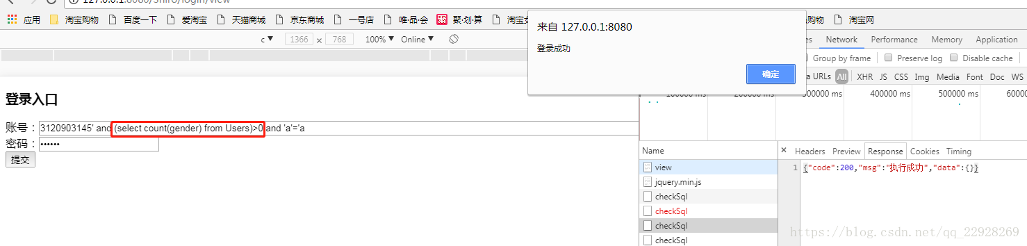 但是如果加上这么一句sql语句在表单,我们可以看到结果依然可以执行成功