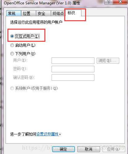 设置openoffice组件服务, 都设成SYSTEM