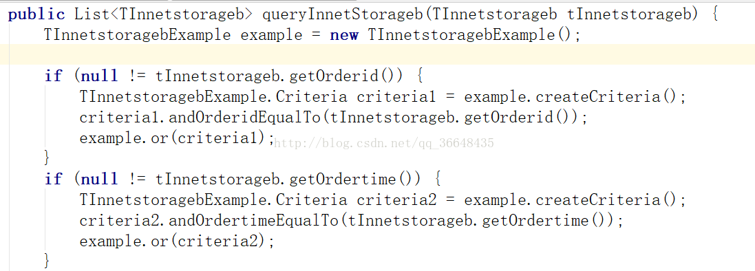 Criteria criteria = example.createCriteria();