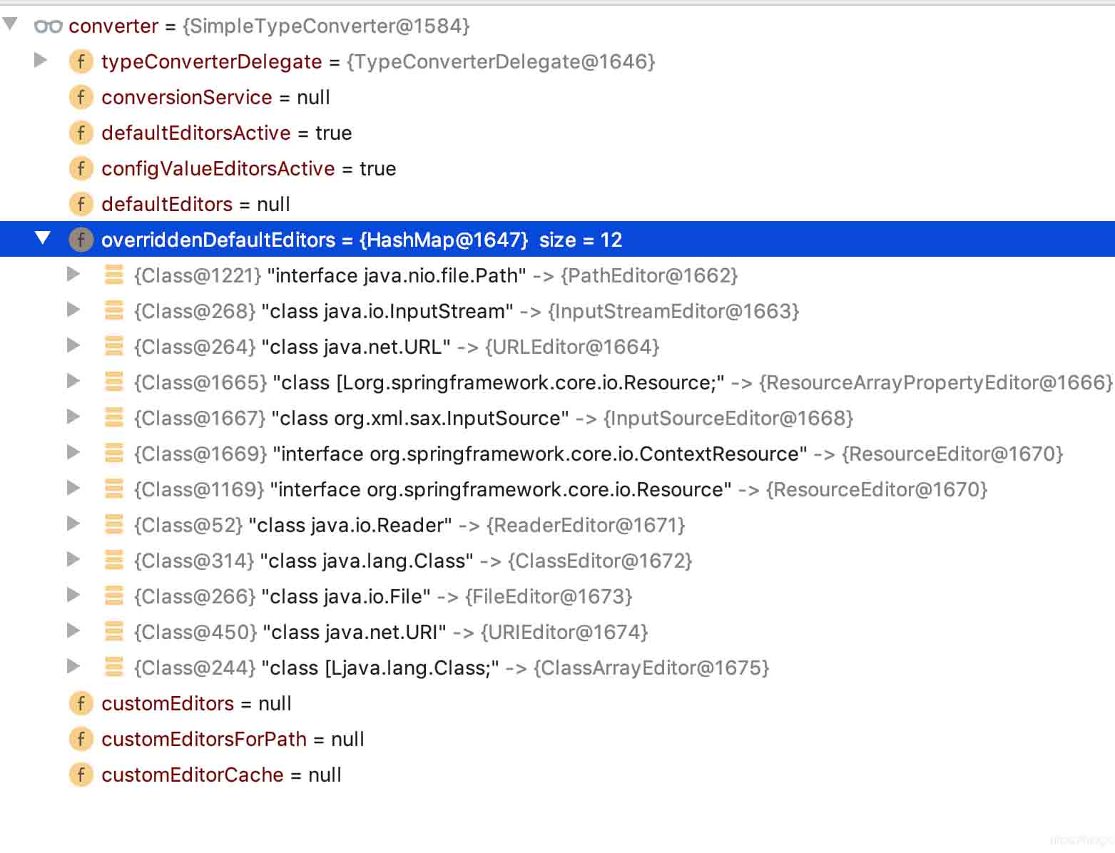 首先我们这里知道了外面传进来的那个转换器是一个叫SimpleTypeConverter 的转换器。