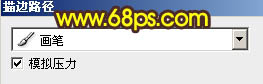 2、新建一个图层,把前景颜色设置为:#D3D153,选择画笔工具,参数设置如图2。再选择钢笔工具勾出图3所示的路径,右键选择描边路径,选择画笔,在弹出的对话框勾选出模拟压力,如图4。效果如图5。