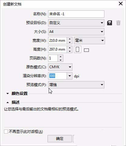 1、新建一文档。页面为A4大小。竖向的页面。其他默认就可以。确定。