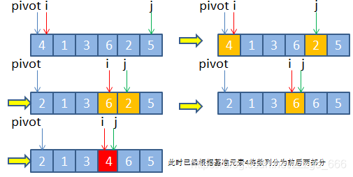 - 最后直接将基准元素x直接放置于指针i所指向的位置即可