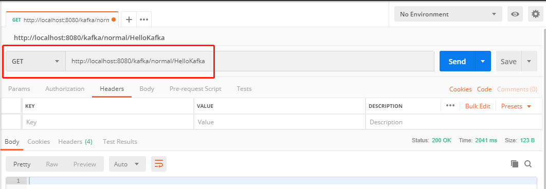 上面示例创建了一个生产者,发送消息到topic1,消费者监听topic1消费消息。监听器用@KafkaListener注解,topics表示监听的topic,支持同时监听多个,用英文逗号分隔。启动项目,postman调接口触发生产者发送消息,