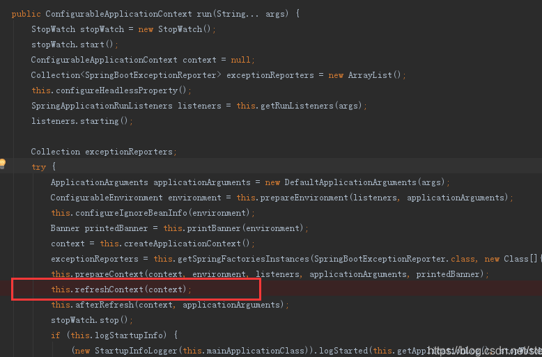 1. 进入SpringApplication类中refreshContext()方法