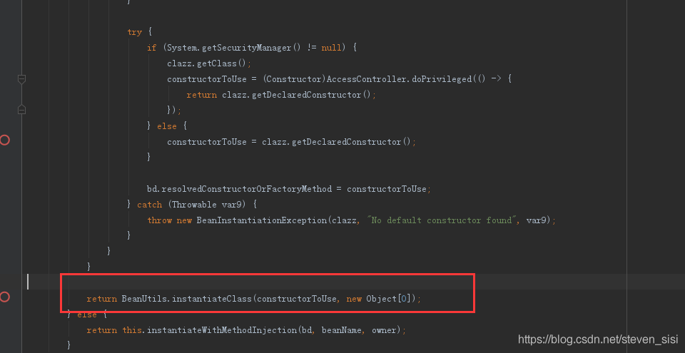 9. 在AbstractAutowireCapableBeanFactory类createBeanInstance()方法中,找到instantiateBean()方法