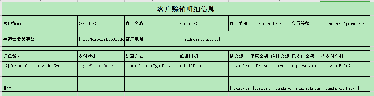 注意其中的{{$fe: 是遍历listmap变量循环填充数据行,其他则是类似占位符,很好理解