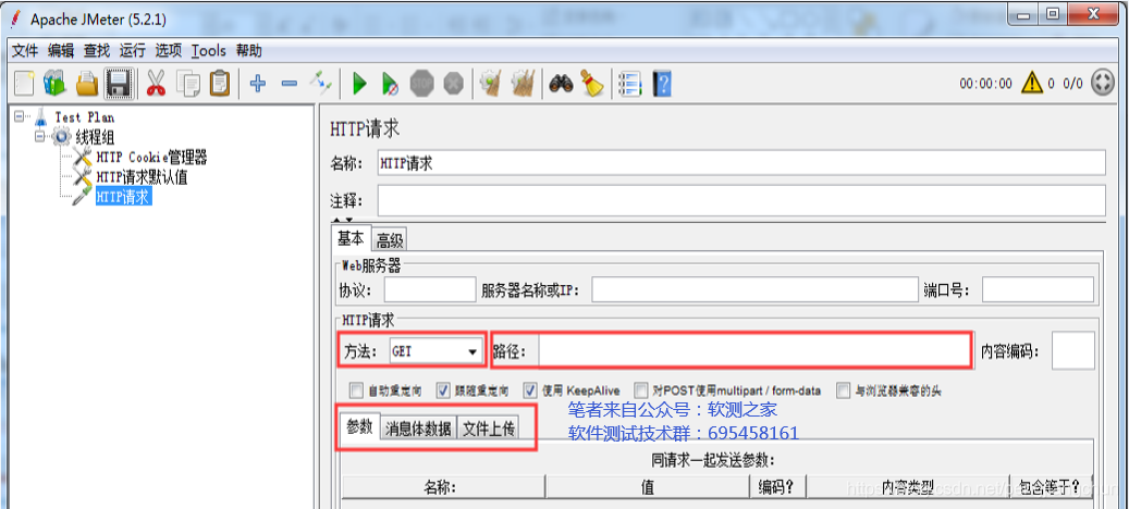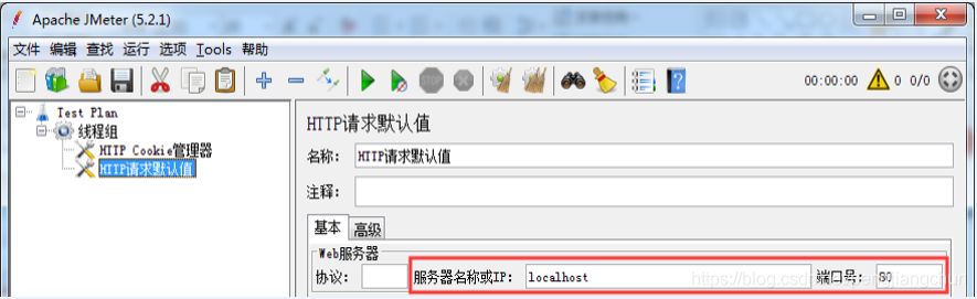元件描述:HTTP请求默认值是为了方便填写后续内容而设置。主要填写[服务器名称或IP]和[端口号],后续的HTTP请求中就不用每次都填写IP地址和端口号了。