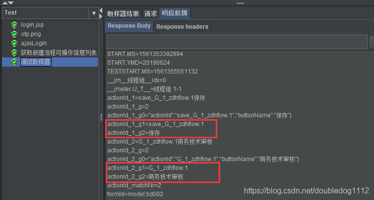 在查看结果树中找到相应数据,我们需要取得actionId,buttonName