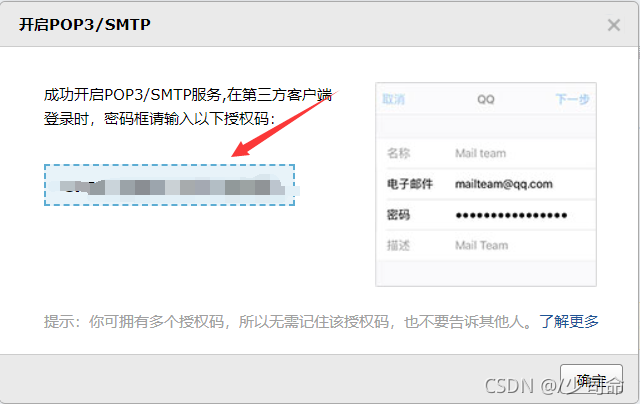 将授权码辅助粘贴到password