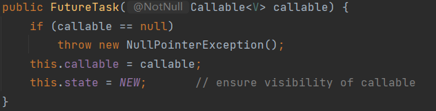 state:表示当前任务的运行状态,FutureTask的所有方法都是围绕state开展的,state声明为volatile,保证了state的可见性,当对state进行修改时所有的线程都会看到。