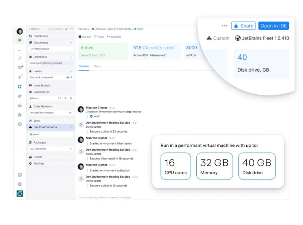 我们都感受到过处理一个新项目时需要设置环境的痛苦。要确保我们有正确的设置、正确的依赖项和其他需要开始工作的一切的确不容易。 JetBrains Space 添加了编排支持,可从源仓库轻松启动远程服务器实例,支持使用 Dockerfile 进行自定义。