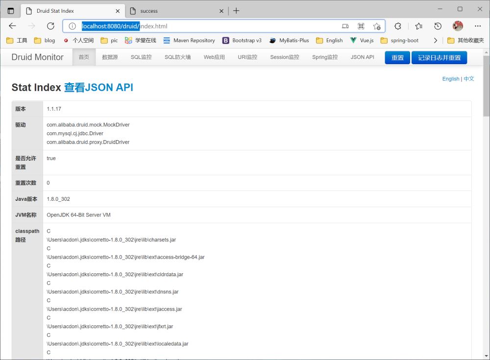 启动项目后, http://localhost:8080/druid/ 可进入 druid 的监控页