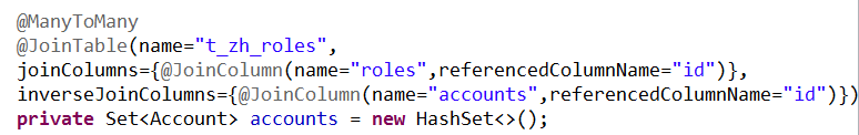下面我们使用权限管理中Role<->Account(用户ManyToMany账号)、Role<->Domain(用户OneToMany权限域)的关系来举例。