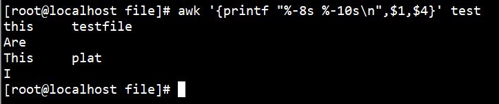 awk '{printf "%-8s %-10sn",$1,$4}' test