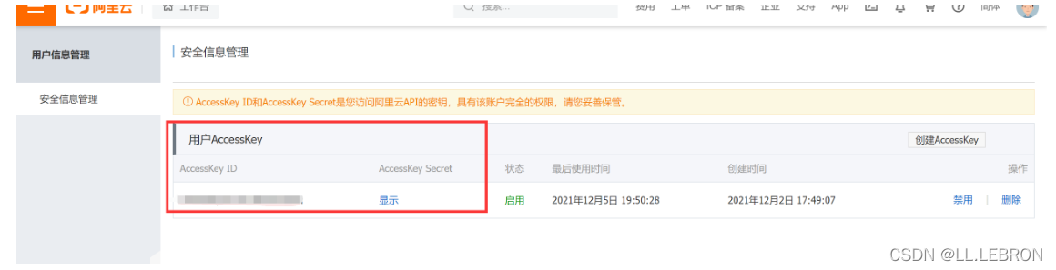 accessKeyId和accessKeySecret的获取: