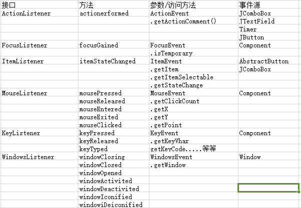 此外还有MouseMotionListener,MouseWheelListener,WindowFocusListener, WindowStateListener,监听接口。