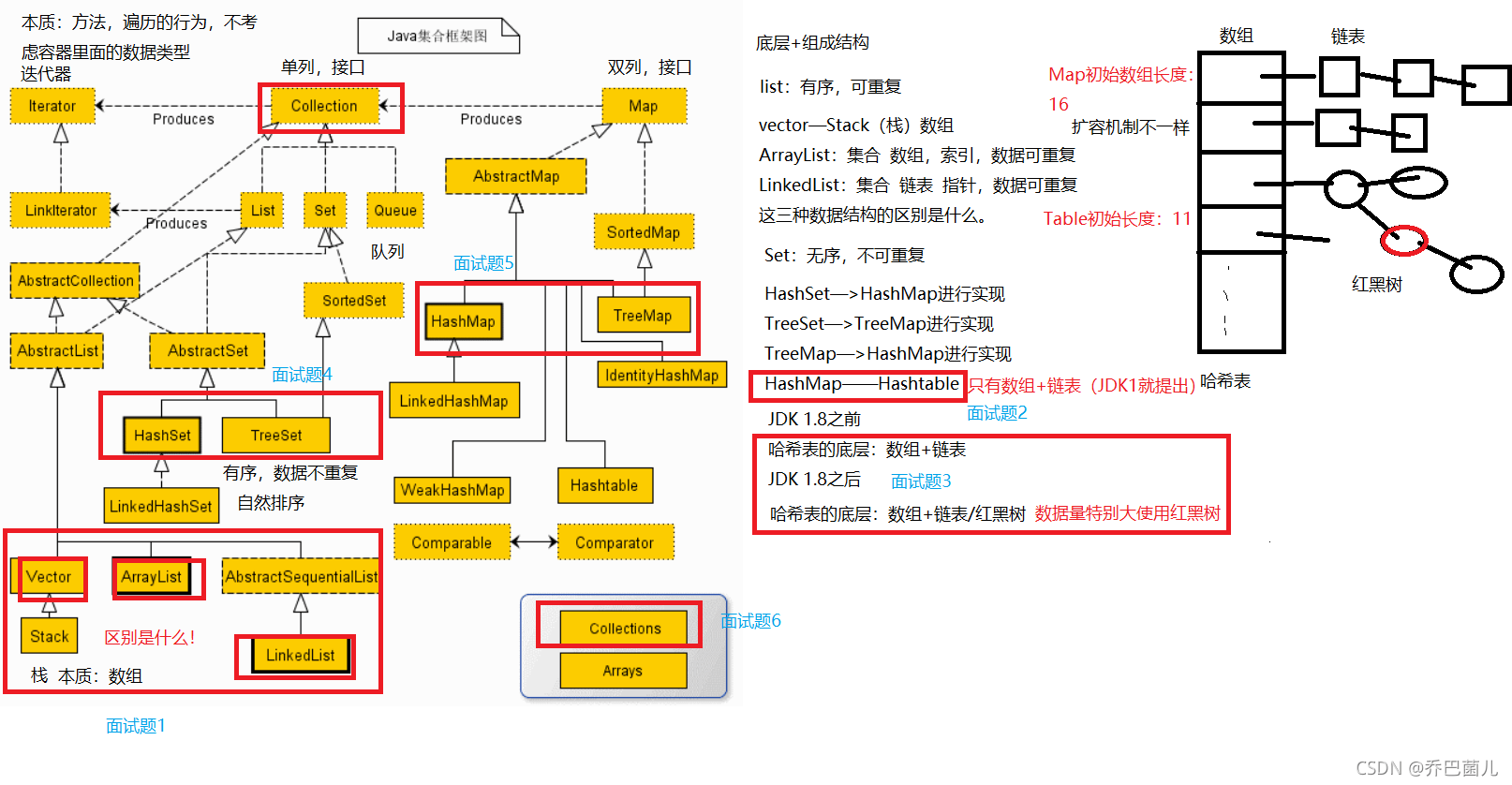 1)底层数据结构不同:HashTable只有数组+链表(JDK1就提出);HashMap在JDK1.8之前 数组+链表,在1.8之后 数组+链表/红黑树