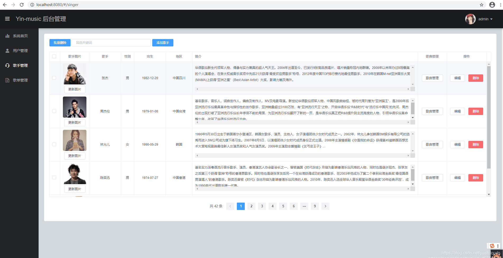 歌手信息操作代码: