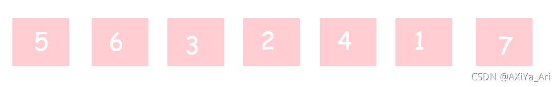 我们先看一个例子,有七个数字组成一个无序数列{5,6,3,4,1,7},对他进行冒泡排序。