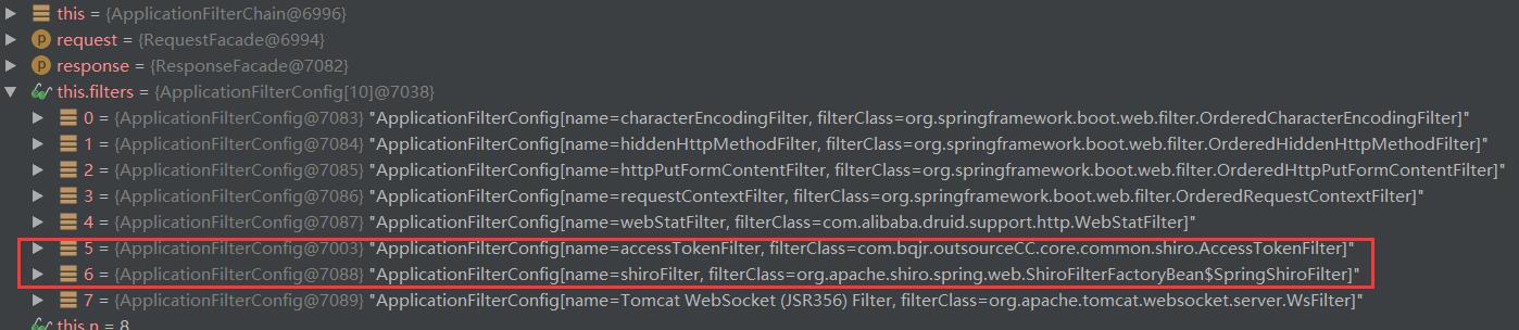 总之就是自定义的过滤器QueryLimitFiter居然在shiroFilter之外而且运行在shiroFilter之前了。。。