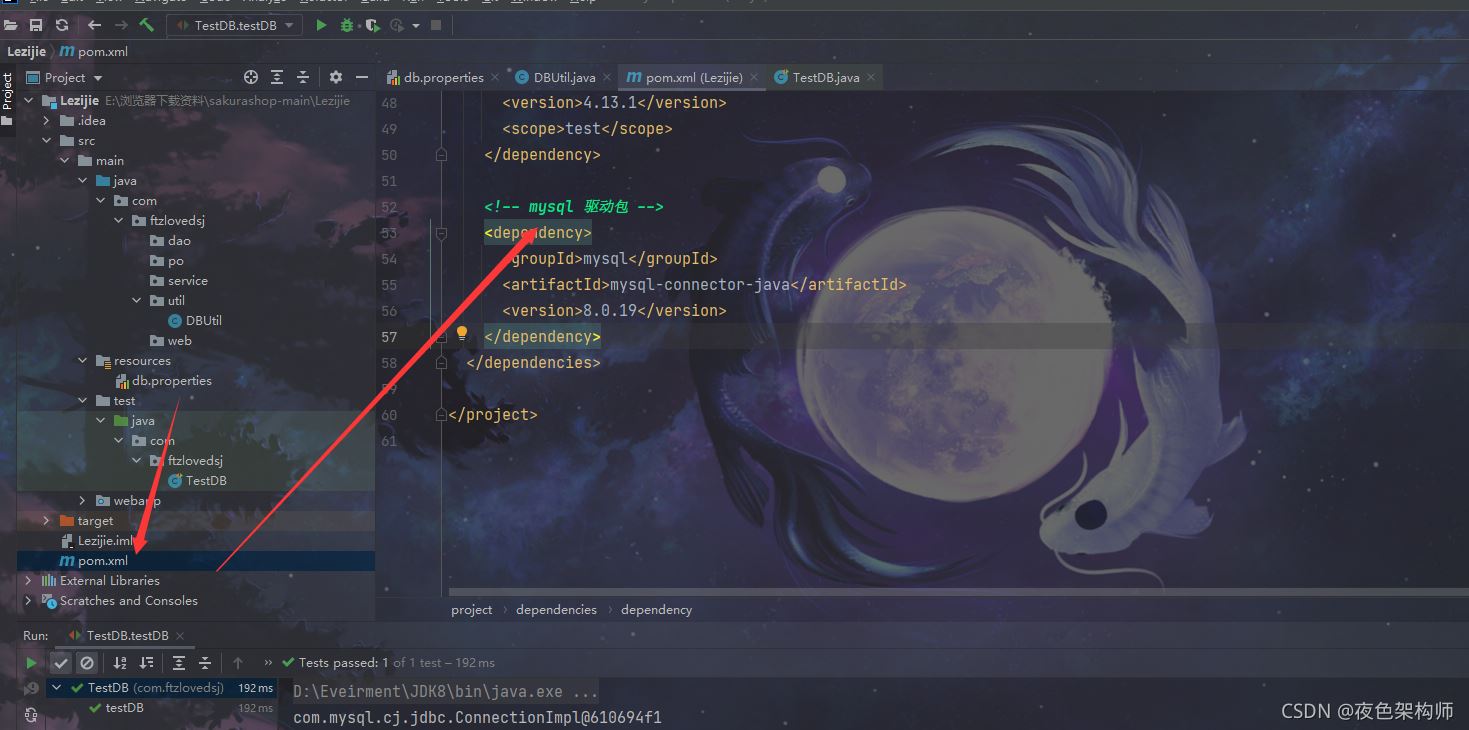 这里倘若出现了报错有可能的原因是你没有在pom文件里面导入mysql连接包: