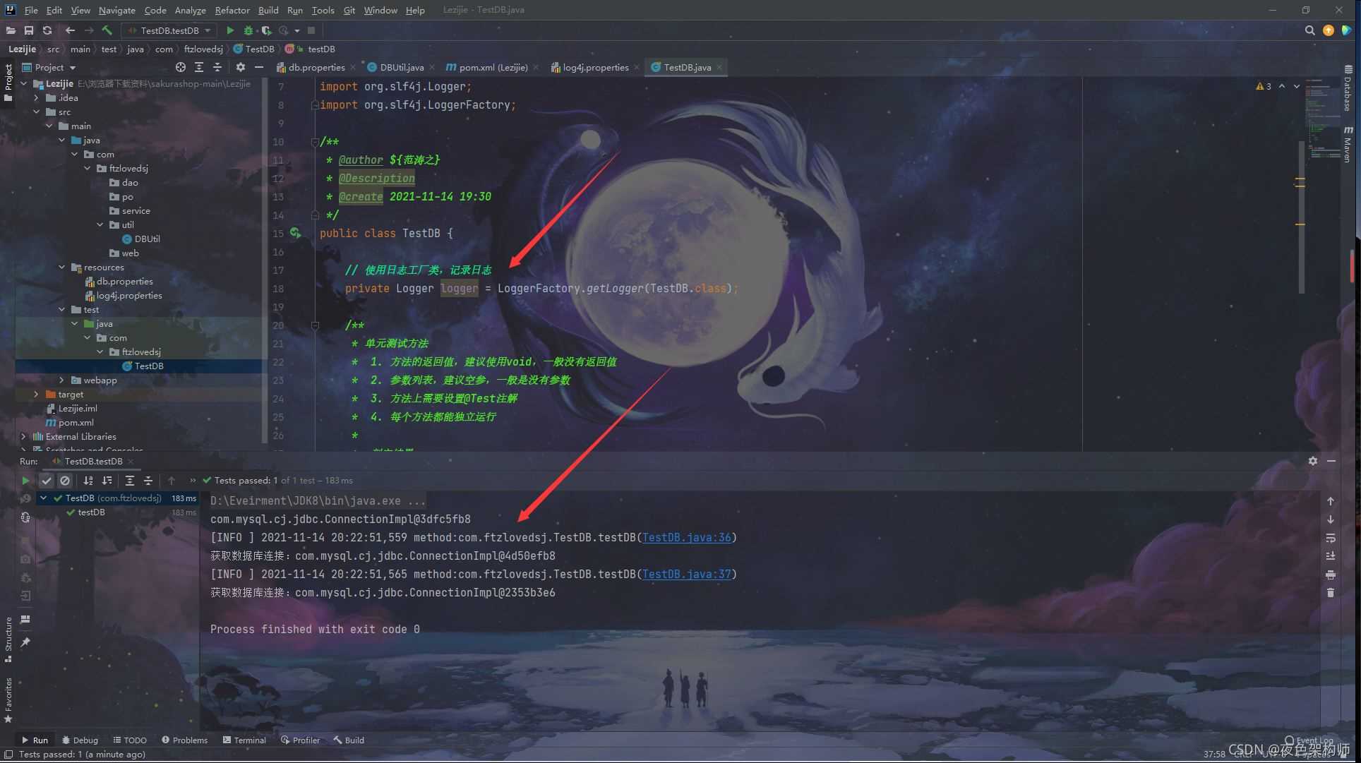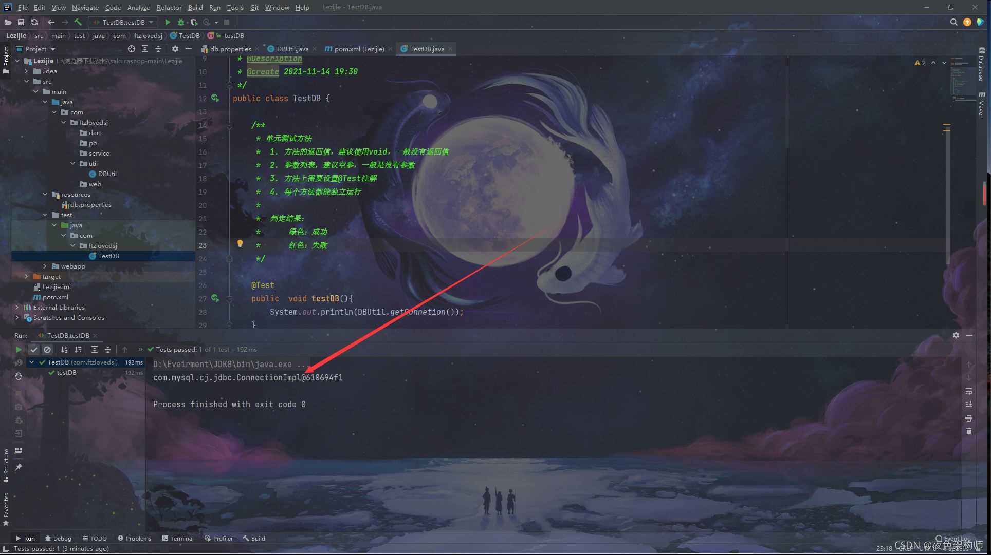 然后编写测试代码:TestDB类: