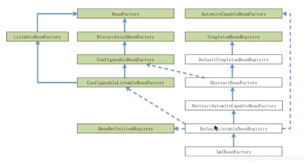 ListableBeanFactory该接口定义了访问容器中Bean的若干方法,如查看Bean的个数,获取某一类型Bean的配置名,查看容器中是否包括某一Bean等方法.