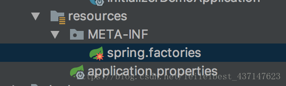 首先我们自定义个类实现了ApplicationContextInitializer,然后在resource下面新建/META-INF/spring.factories文件。