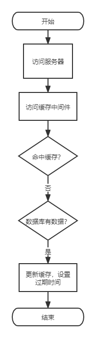 一个请求Request过来,服务器首先和缓存中间件建立连接,传输对应key到缓存中间件中获取相对应的数据,服务器拿到返回的结果后,判断返回的结果是否有数据,如果有数据,则返回从缓存中拿到的结果。如果缓存中间件中没有数据,则建立数据库连接,访问数据库服务器,按照相应逻辑拿到返回结果,判断结果中是否有数据,如果有则返回对应数据,如果没有则按照业务场景要求,返回对应结果(一般为null或者new一个空对象)。