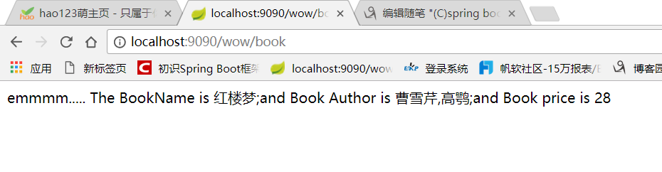 book的属性值在配置文件里面给出,我用了自定义配置文件,没有在application.properties里面配置,那样的话这个文件太臃肿了。