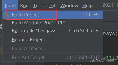 此代码有关字符串的拼接。其实“he”与“llo”在编译时期就已经编译为“hello”了。如果要看编译时期str2是什么字符串,则此时我们先点击Build选项,点入Build Project选项则进行编译(图1)。可以在该类文件的路径(含有.class文件)底下(图2+图3),按住shift键加右键点击powershell窗口,输入反编译指令javap -c 类名则能看到编译时str2是否是已经拼接好的hello。