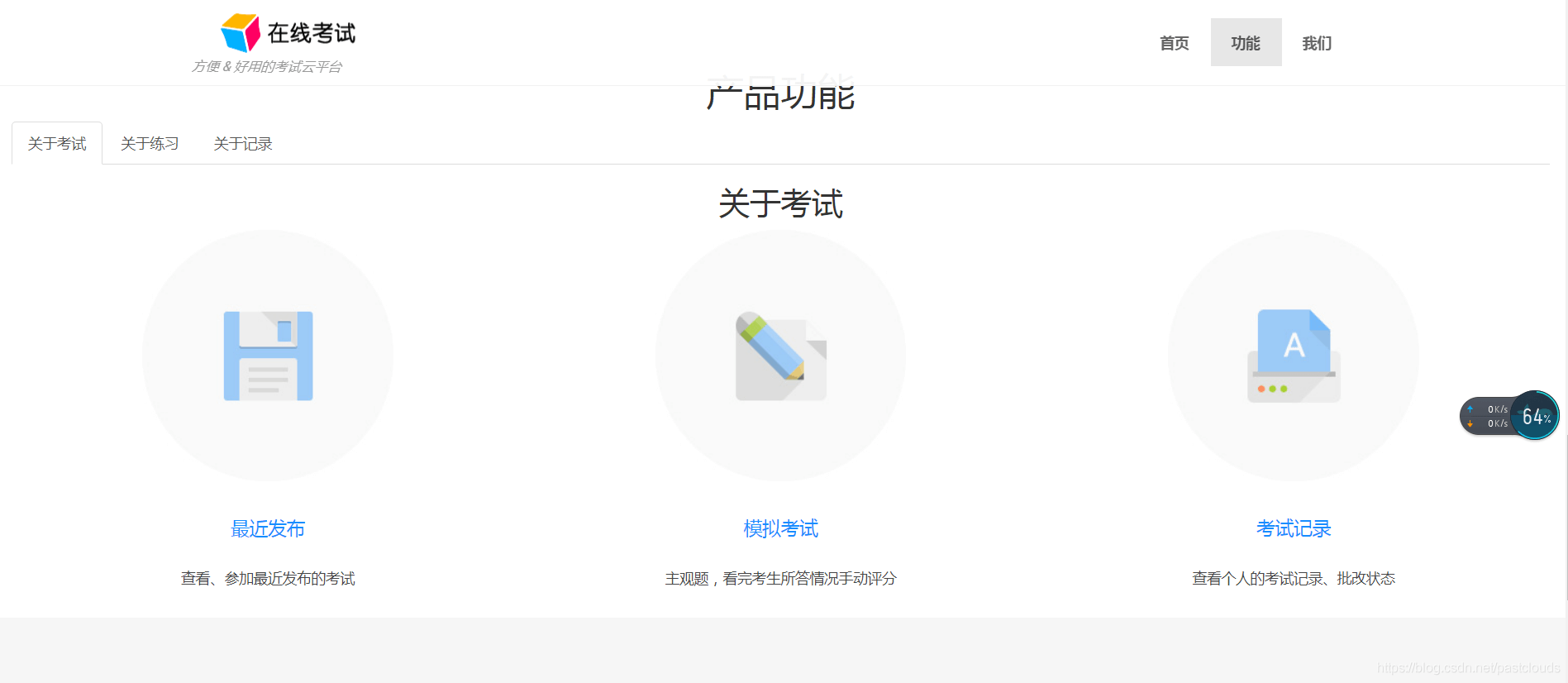 - 考生登录前台参加练习,练习完自动判分,记录错题
