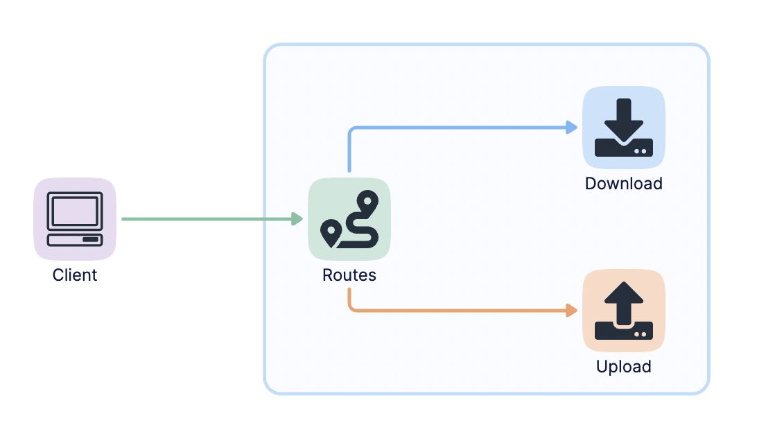 仅以此为示例,无需深入探讨上传下载是否应该通过Go来实现。那么接下来我们就看看我们怎么通过go-zero来解决这么一个单体服务,我们称之为文件(file)服务。架构如下图: