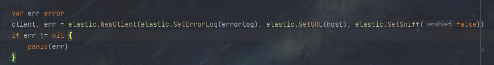 client, err = elastic.NewClient(elastic.SetErrorLog(errorlog), elastic.SetURL(host), elastic.SetSniff(false))