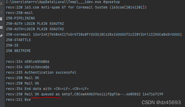 好,那我们下现在用go实现代码让如下:这里只是一个demo,主要熟悉smtp命令