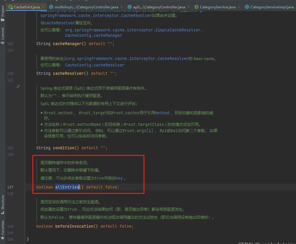 allEntries=true开启全匹配cacheNames填写 模糊删除的name