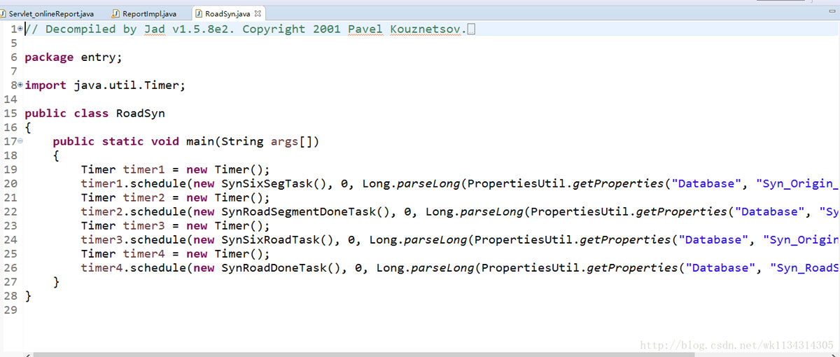 - (4)Main-Class指的是程序的执行入口,例如本例子中,就是entry这个package下的RoadSyn类。该类中定义了main函数。