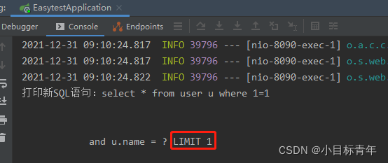 String newSql = boundSql.getSql().toLowerCase(Locale.CHINA).replace("[\t\n\r]", " ") + " LIMIT 1";