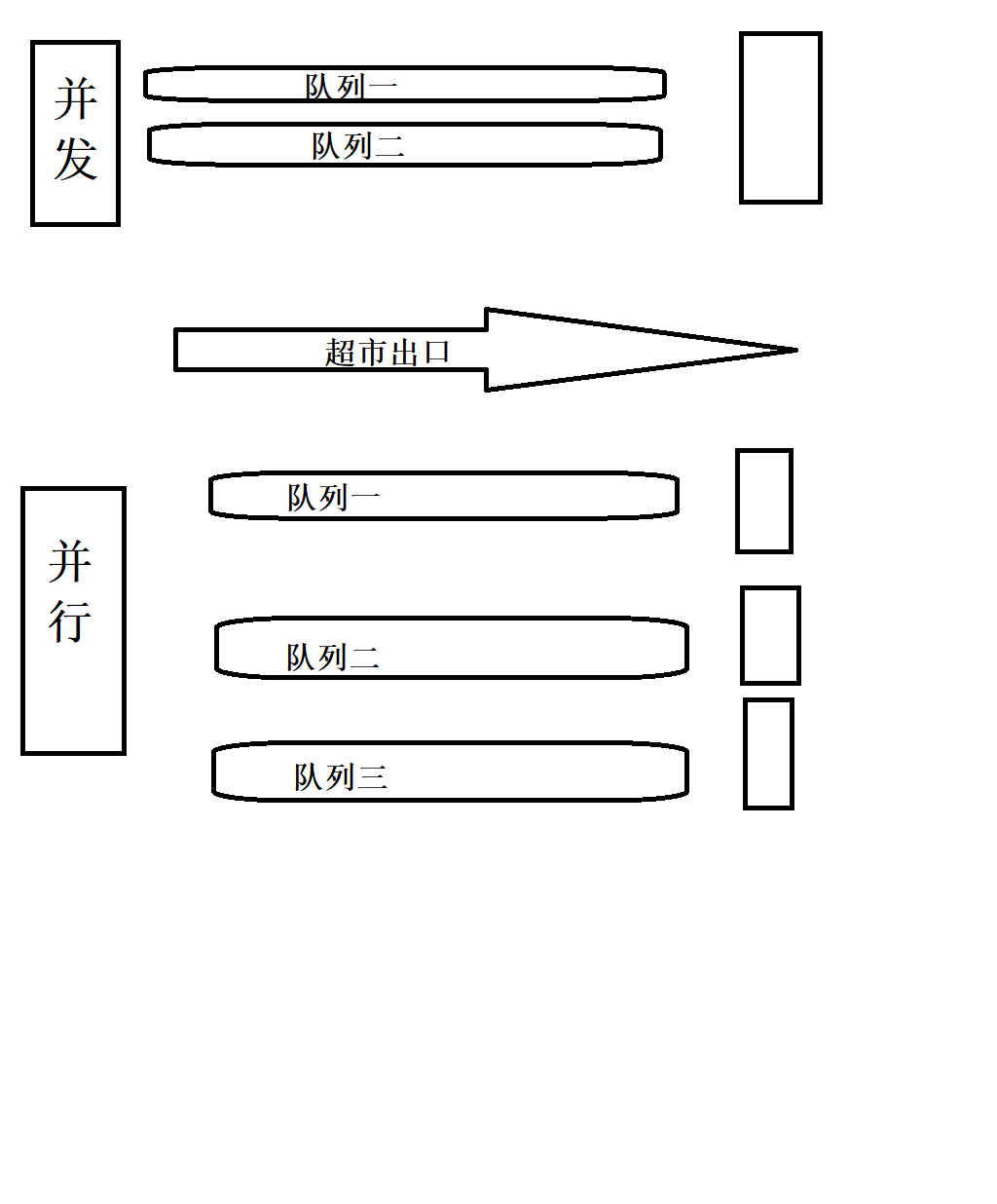 类似于超市柜台结账,并行是多个柜台结多个队列,在计算机中是多核cpu处理多个go语言开启的线程,并发是一个柜台结账多个队列,在计算机中就是单核cpu处理多个任务,抢夺时间片.