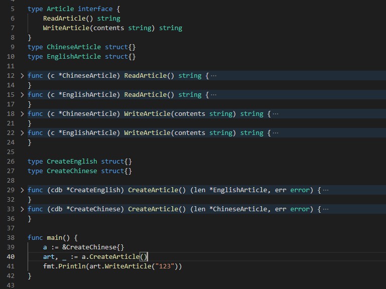 以上就是尊敬镜子最近收集整理的关于golang实现简单工厂、方法工厂、抽象工厂三种设计模式的全部内容,更多相关golang实现简单工厂、方法工厂、抽象工厂三种设计模式内容请搜索靠谱客的其他文章。