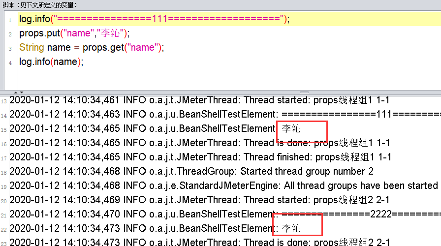 1、log:写入信息到jmeter.log文件,使用方法:log.info(“hahahahahahah”);