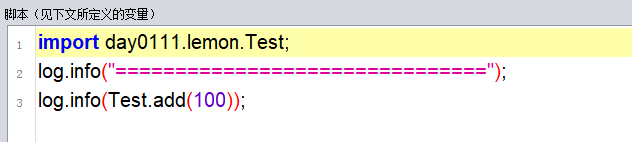 然后在BeanShell里引用Test.java,调用函数,传参100,日志输出: