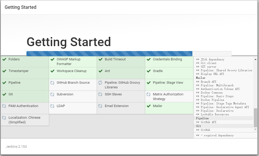 9.点击install suggested plugins按钮,出现如下界面