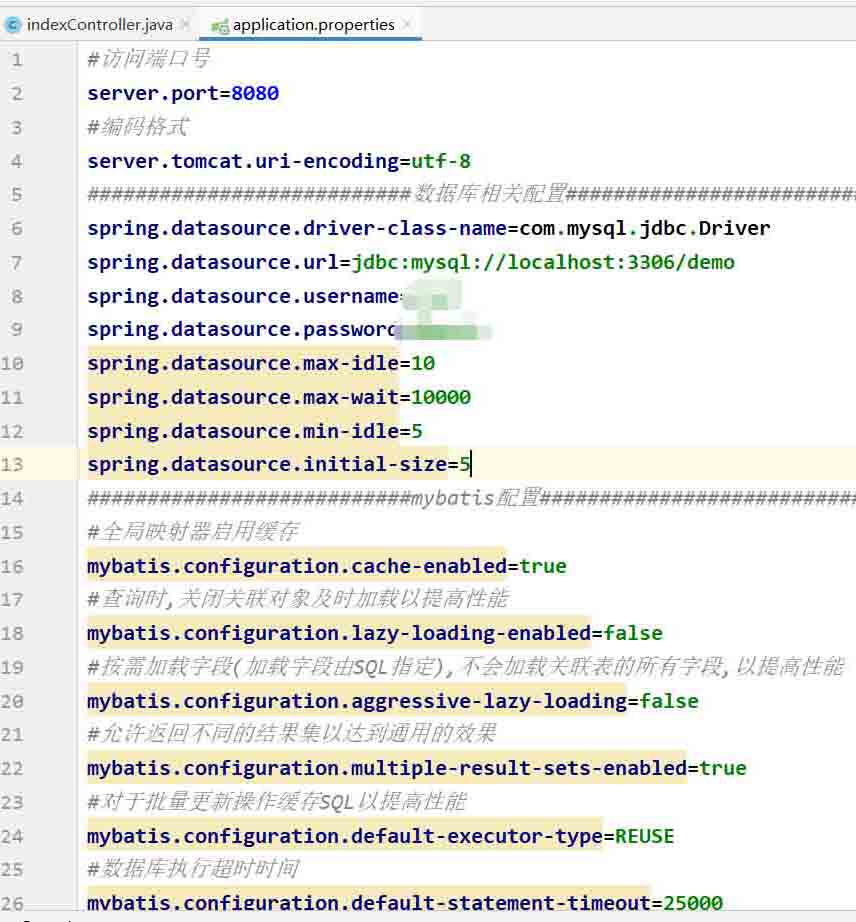 配置了一个mysql数据库连接信息,访问端口号,编码格式,及mybatis配置