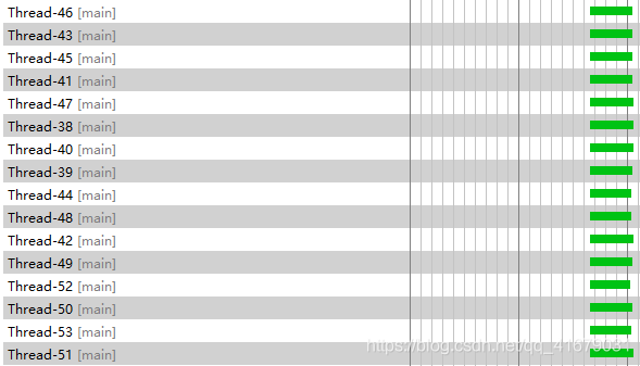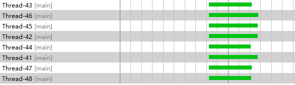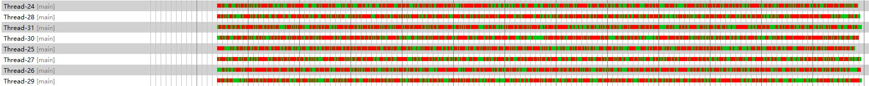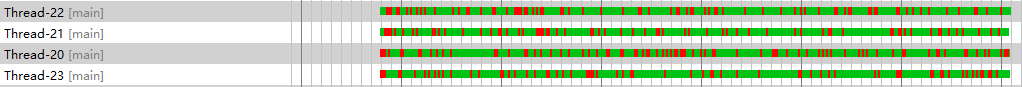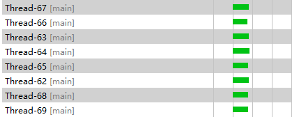 单线程记录日志时,前半段队列未满时生产线程一直处于工作状态,后半段因消费能力跟不上生产能力,导致队列满载,生产线程开始出现等待状态