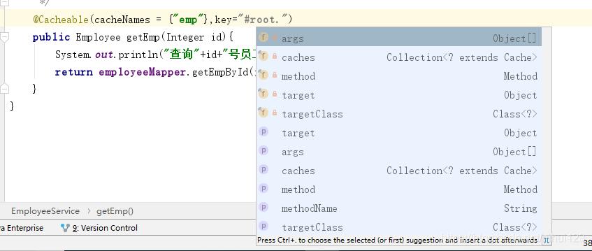 @Cacheable(cacheNames = {"emp"},keyGenerator = "myKeyGenerator")