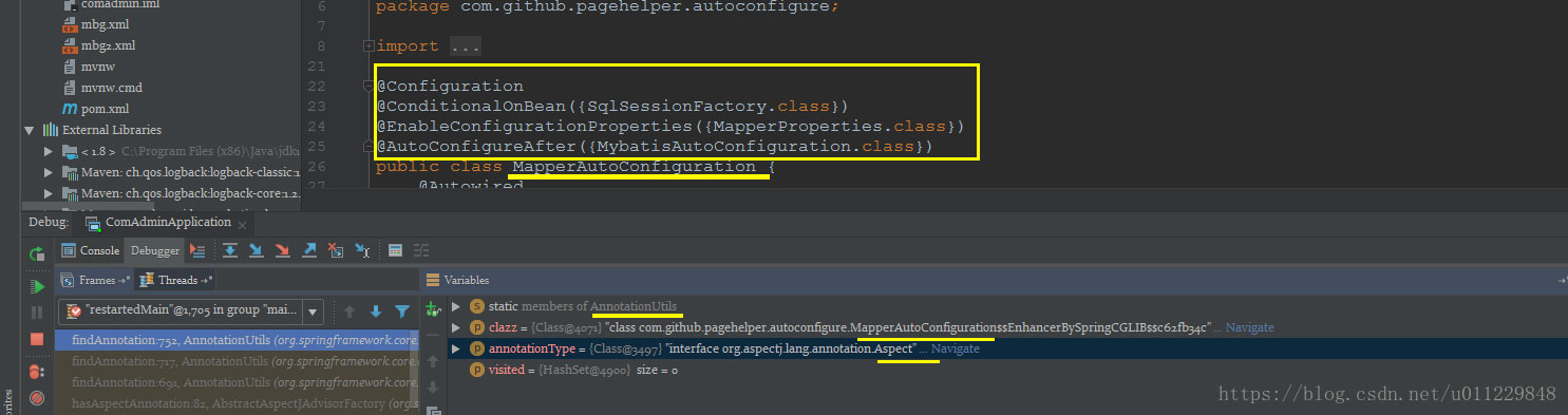 com.github.pagehelper.autoconfigure.MapperAutoConfiguration$$EnhancerBySpringCGLIB$$c62fb34c - annotationType是