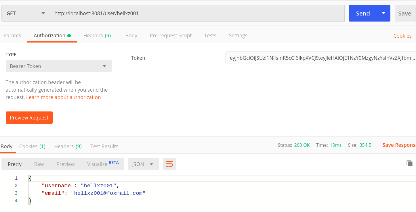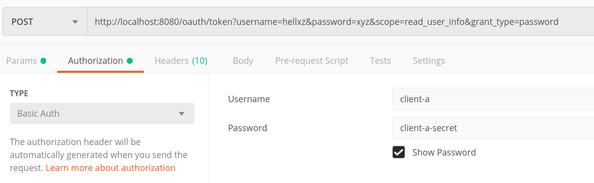 发送POST请求http://localhost:8080/oauth/token?username=hellxz&password=xyz&scope=read_user_info&grant_type=password